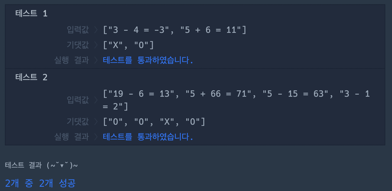 if(Integer.parseInt(arr[0])-Integer.parseInt(arr[2])==Integer.parseInt(arr[4])) answer[i]="O";