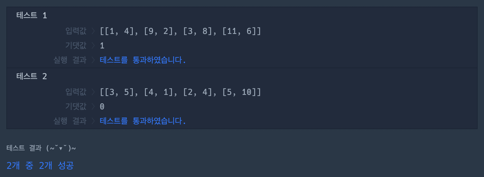 | [ํ๋ก๊ทธ๋๋จธ์ค][JAVA]Level 0 : ๊ฒน์น๋ ์ ๋ถ์ ๊ธธ์ด (0) | 2022.12.27 |