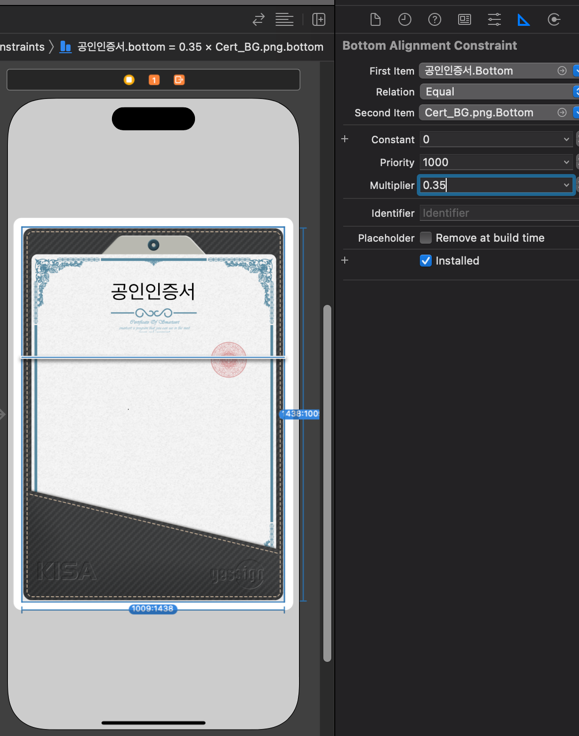 이후, Label의 Align Bottom to 속성의 Multipier의 비율을 설정해준다.