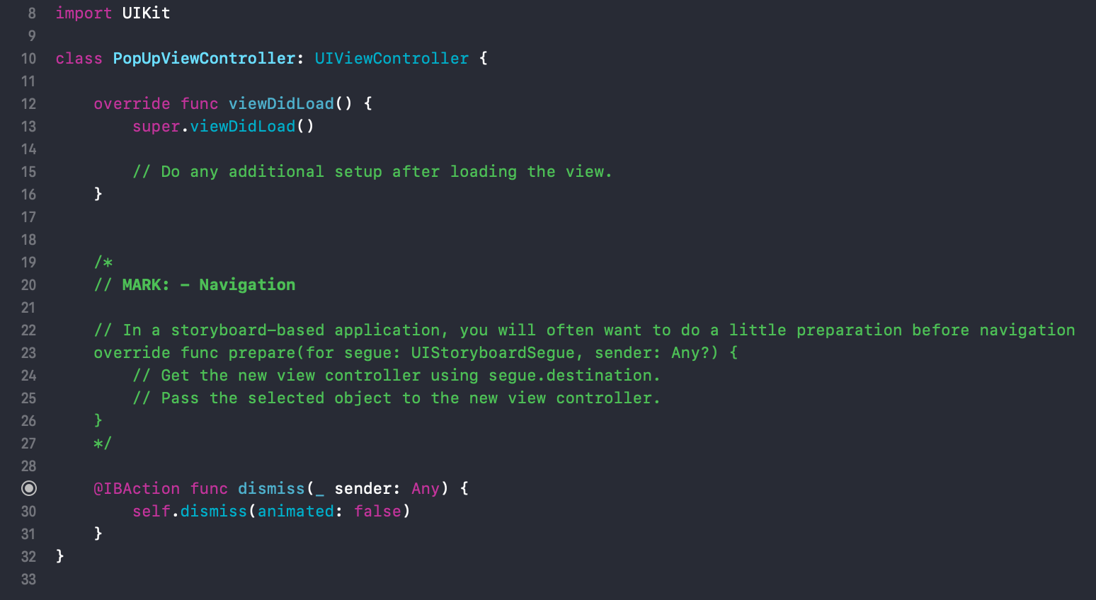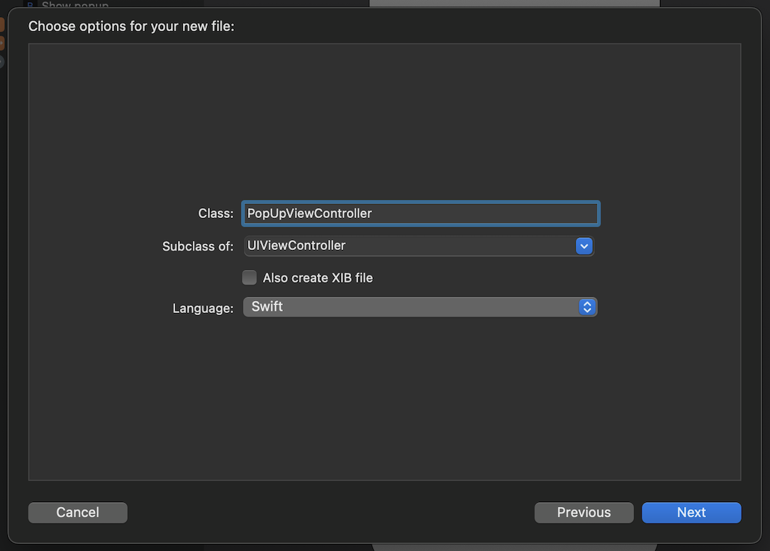 MainStoryboard์ 'Show popup' ๋ฒํผ์ ํ๋ ์ถ๊ฐํด์ค๋ค.