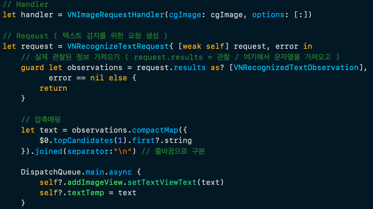 private func recognizerText(image: UIImage?) { // ์ด๋ฏธ์ง๋ ์ ํ์ฌํญ