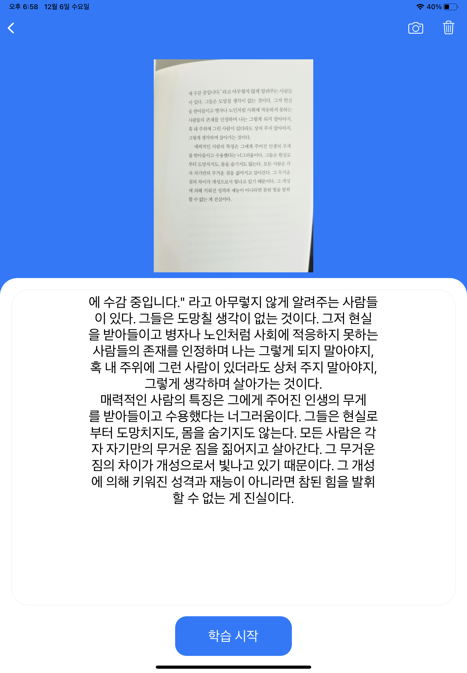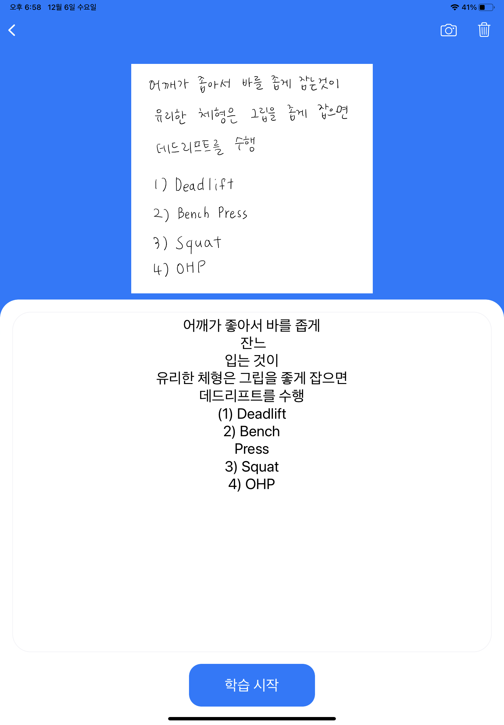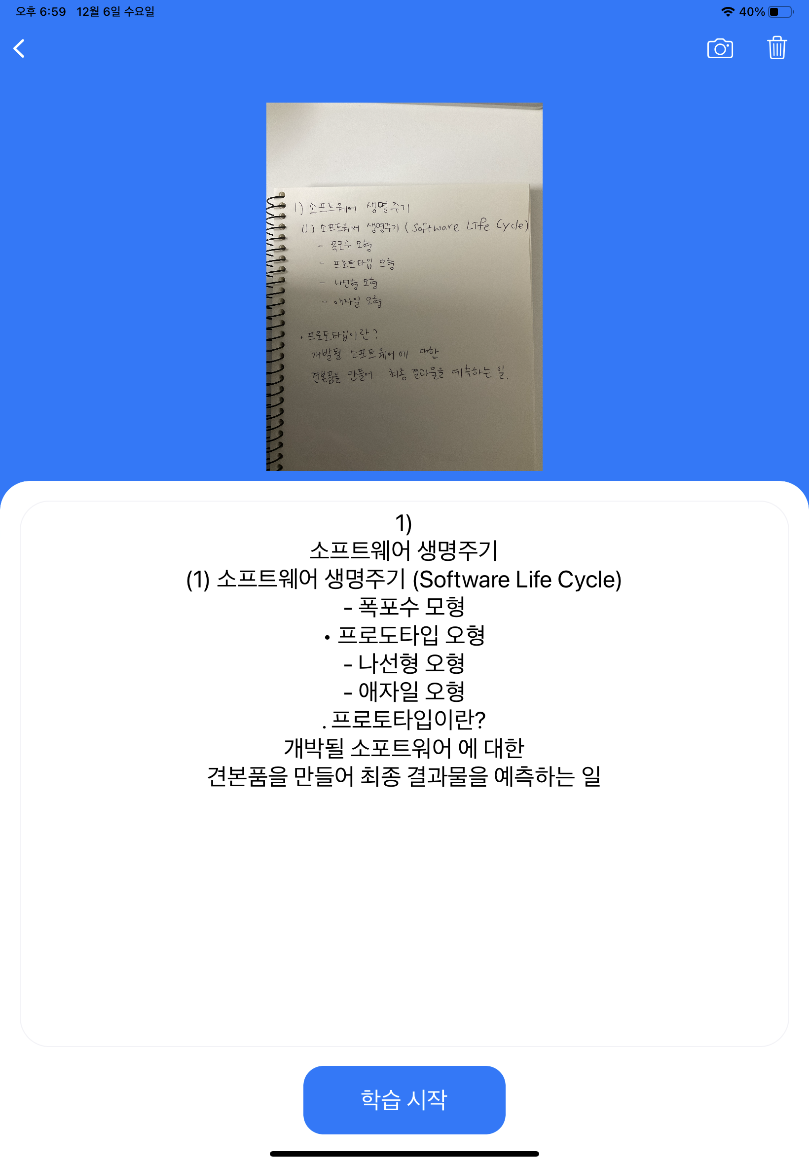 ์ฌ์ฉ์๊ฐ ์ค์ค๋ก ๊ณต๋ถํ๋ฉฐ ๋ฐฑ์ง์ ์ ์ ๋ด์ฉ๋ค์ ์ฌ์ง์ผ๋ก ์ฐ์ผ๋ฉด ํด๋น ๋ด์ฉ์ค์์ ๋๋ค์ผ๋ก ๋น์นธ์ ์์ฑํด์ฃผ๋ฉฐ