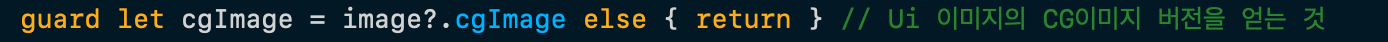 guard let cgImage = image?.cgImage else { return } // Ui ์ด๋ฏธ์ง์ CG์ด๋ฏธ์ง ๋ฒ์ ์ ์ป๋ ๊ฒ