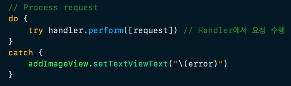 try handler.perform([request]) // Handler์์ ์์ฒญ ์ํ