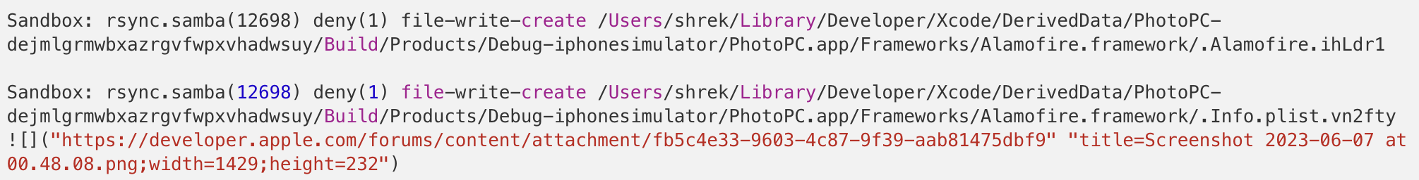 PROJECT - Build Settings - Build Options - User Script Sandboxing -> NO ๋ก ์์ ํ๋ฉด ํด๊ฒฐ๋๋ค.