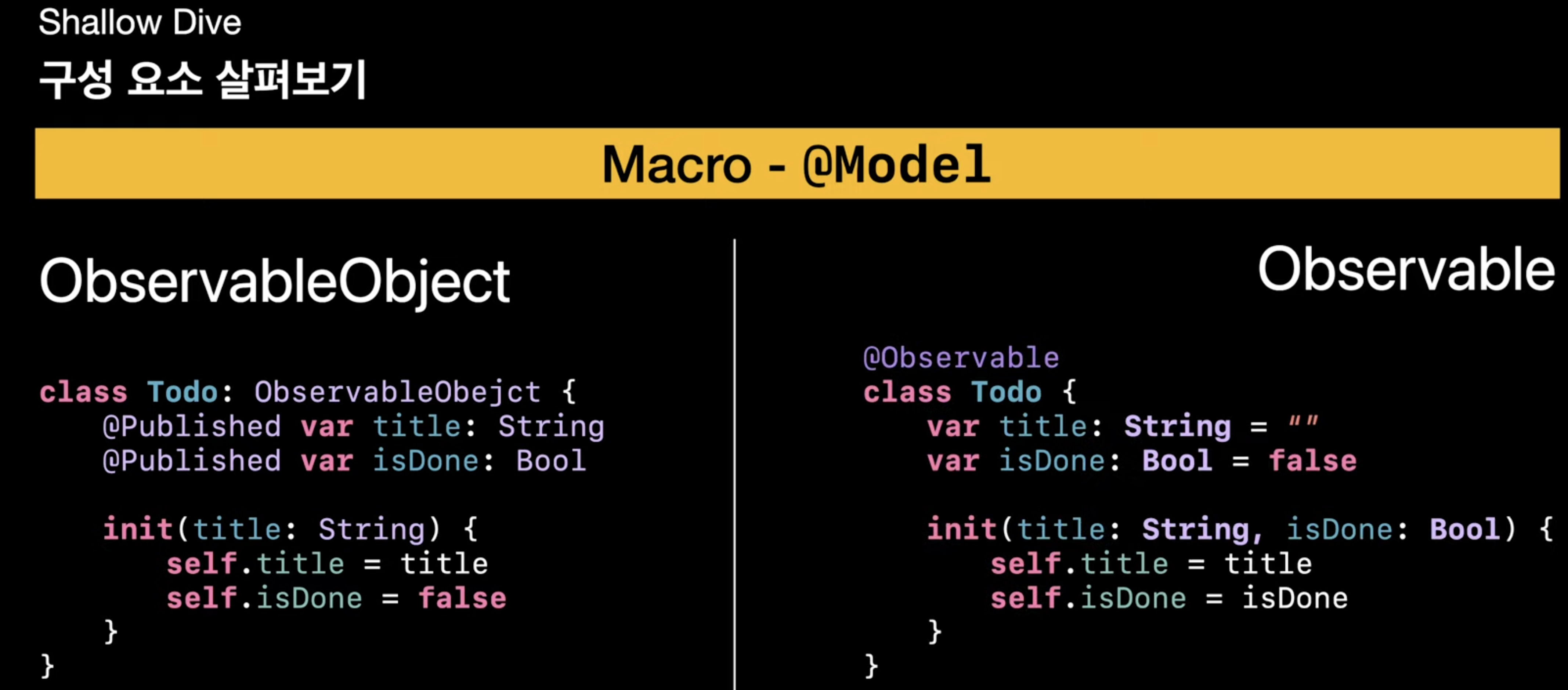 ๊ธฐ์กด์ iOS13๋ถํฐ ์ฌ์ฉํด์ค๋ ObservableObejct์ ๋น๊ตํ๋ค๋ฉด,
