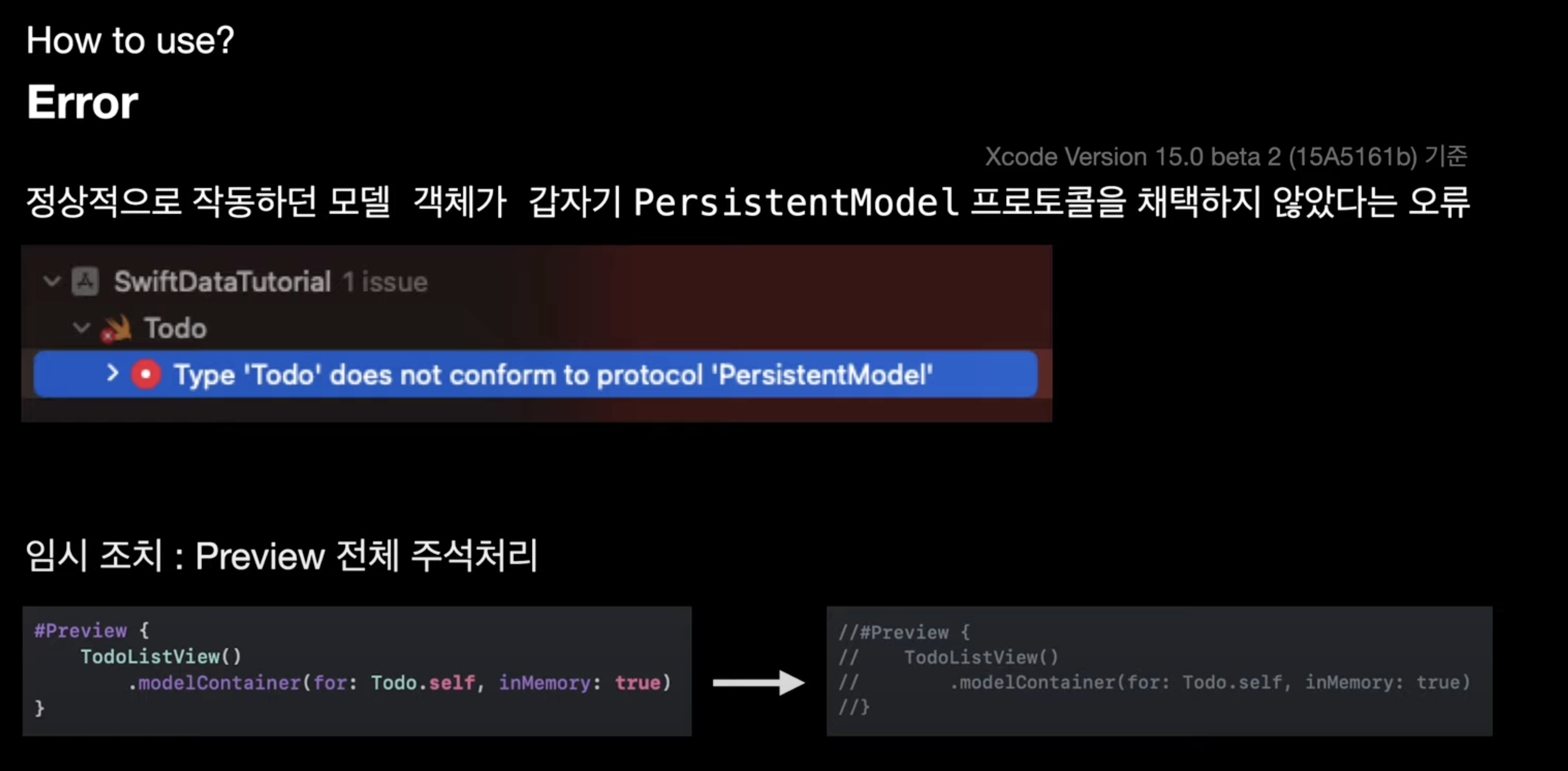- PersistentModel : AnyObject, Obersvable, Hashable, Identifiable