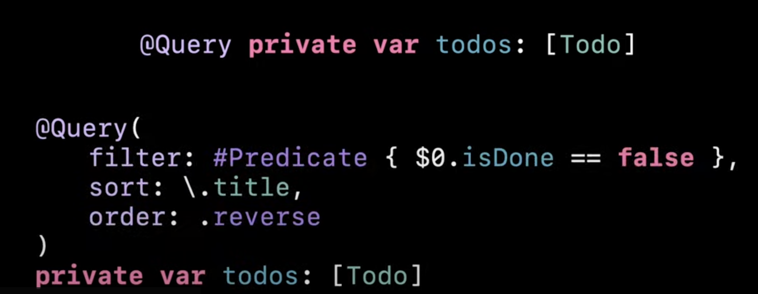 @Query private var todos: [Todo] // ์ ์ธ
