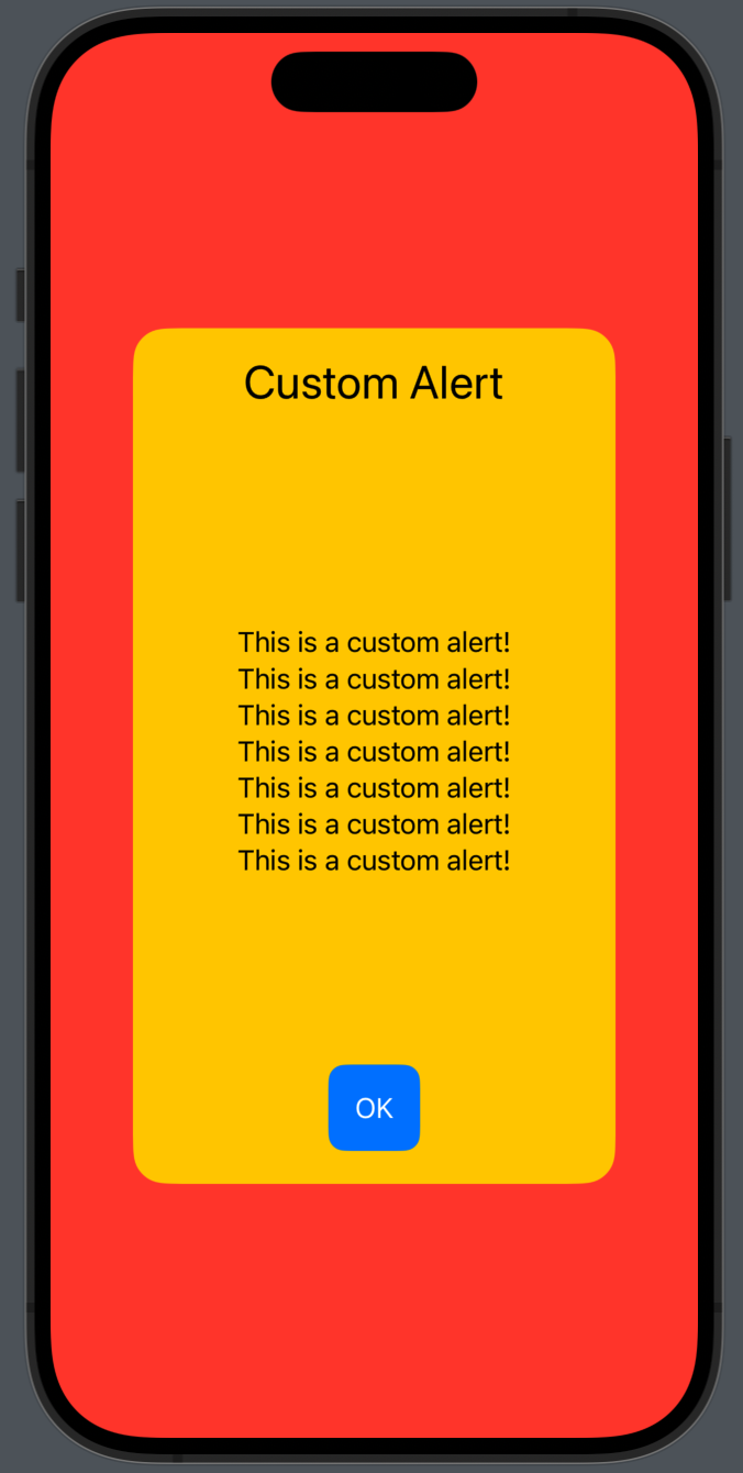 Text("This is a custom alert!\nThis is a custom alert!\nThis is a custom alert!\nThis is a custom alert!\nThis is a custom alert!\nThis is a custom alert!\nThis is a custom alert!")