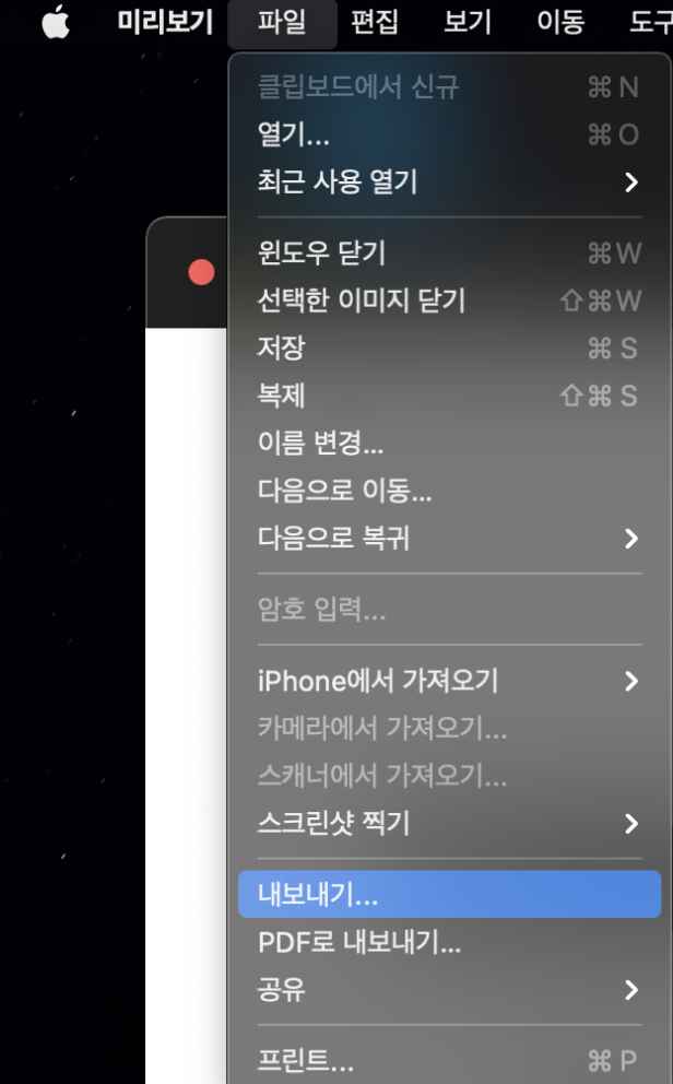 3. ์ผ์ชฝ ์๋จ์์ ํ์ผ -๋ด๋ณด๋ด๊ธฐ -'์ํ' ์ฒดํฌํด์ ๋ฅผ ๋๋ฌ์ ์ ์ฅํ๋ค.