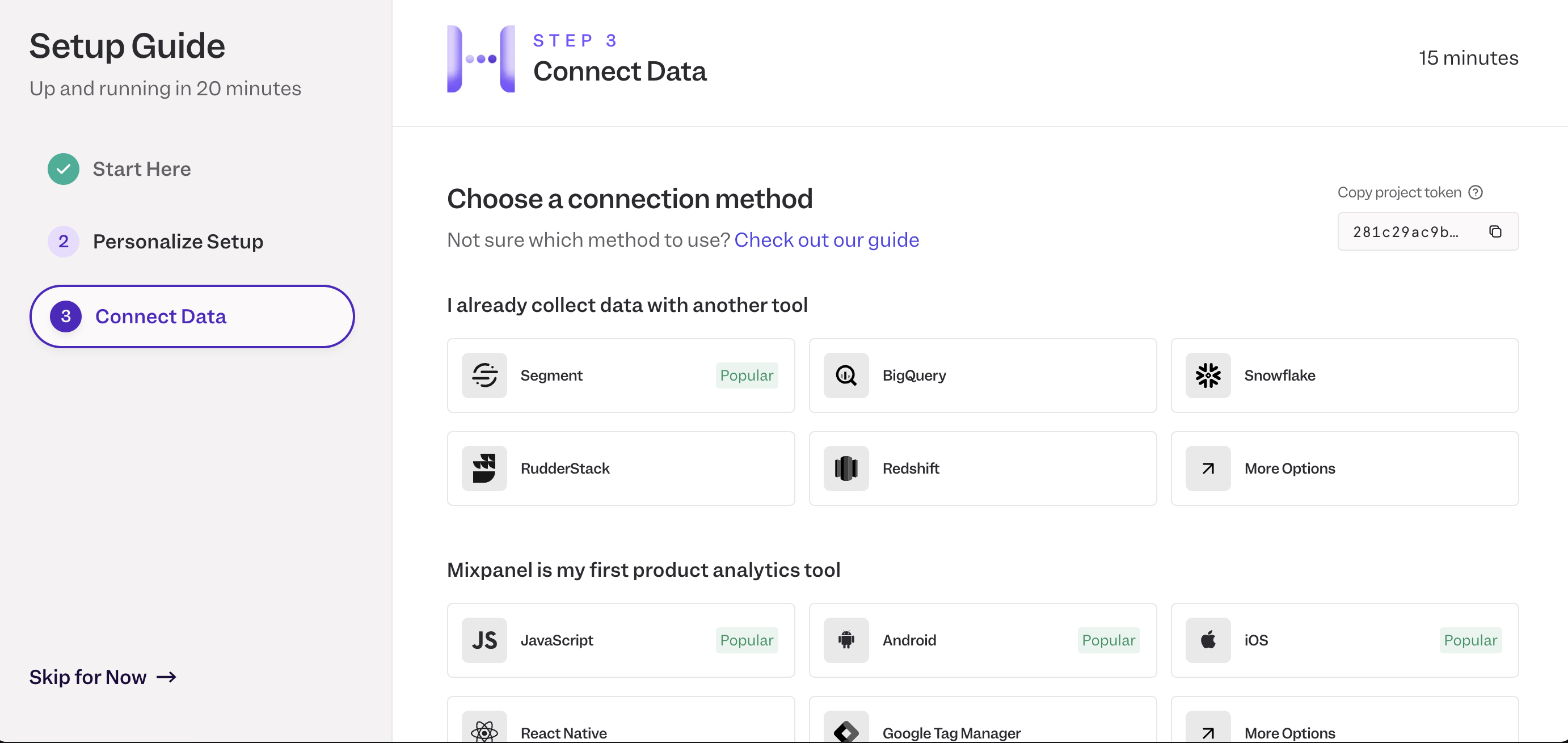๋์ค์ ๋ฐ๋ก ๋ค์ด ๊ฐ ๊ฒฝ์ฐ, ์ฐ์ธก ์๋จ ๋ฉ๋ด์์ Set Up MixPanel์ ์ ํํ๋ฉด ๋จ !