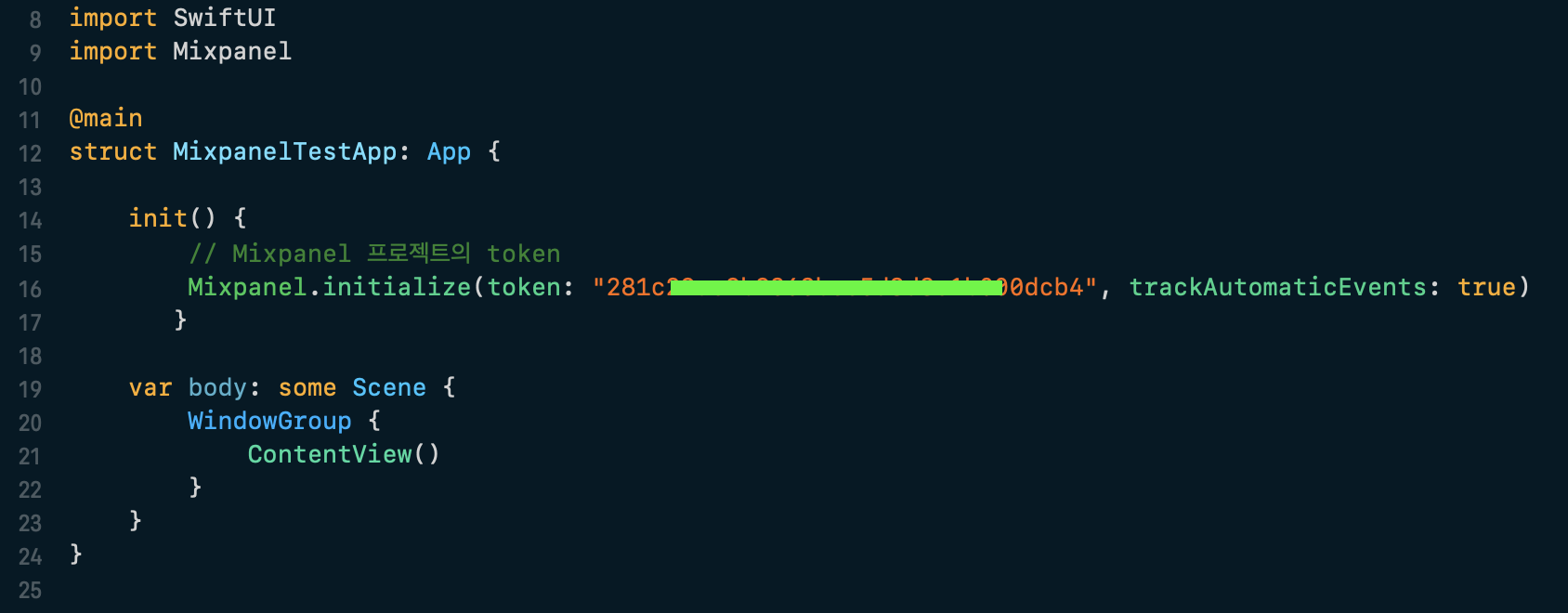 @main ํ์ผ์์ Mixpanel์ ์ฐ๊ฒฐ์ํค๊ธฐ ์ํด, ํ ํฐ๊ฐ์ ํตํด์ ์ด๊ธฐํ ์์ผ ์ค๋๋ค.