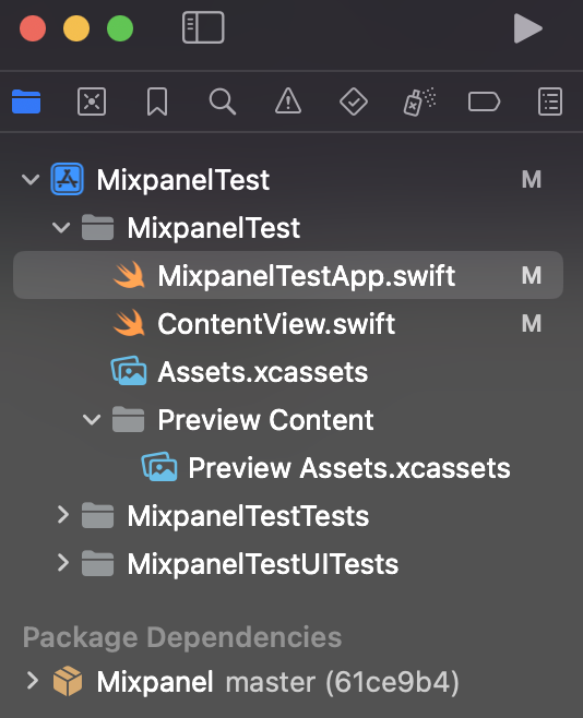 ์ ์ด์ Xcode์ ํ๋ก์ ํธ ํ์ผ์ ์์ฑํด์ฃผ๊ณ , MixPanel ๋ผ์ด๋ธ๋ฌ๋ฆฌ๋ฅผ ์ถ๊ฐ์์ผ์ค์ผํฉ๋๋ค.