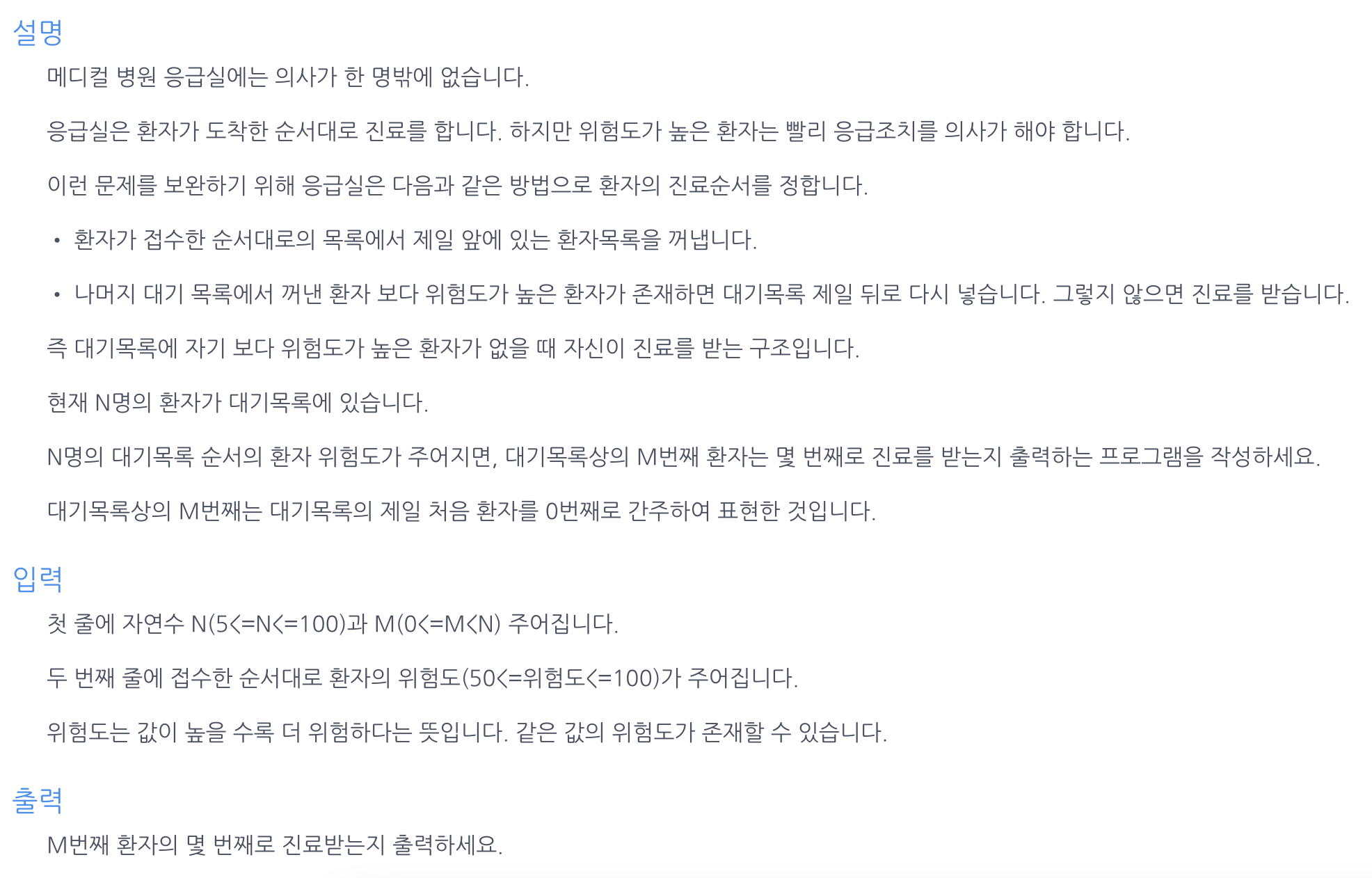 if(x.priority>tmp.priority){ // ํ์ฌ tmp ๊ฐ๋ณด๋ค ์ฐ์ ์์๊ฐ ๋์ ๊ฐ์ด ์๋ค๋ฉด