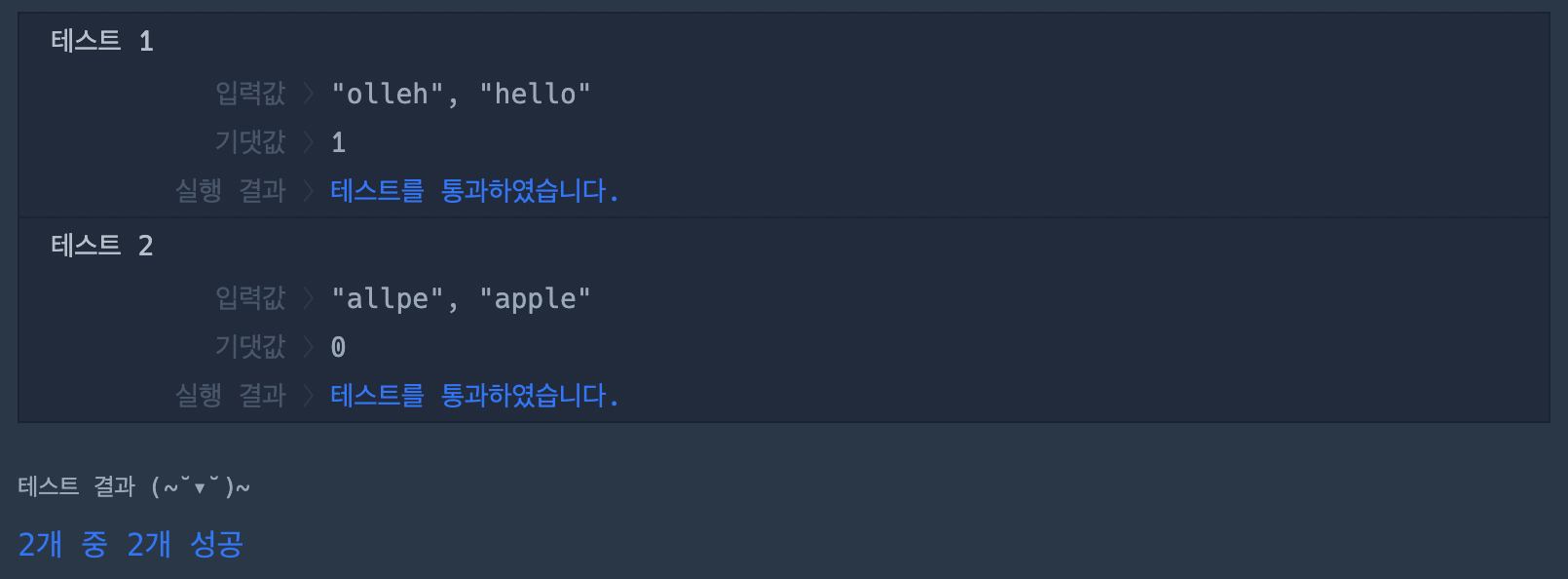 어떻게 로직을 짤까하다가.. 그냥 문자열이 1개라도 다르면 0을 return 하면 되니.. hashmap을 사용했다..