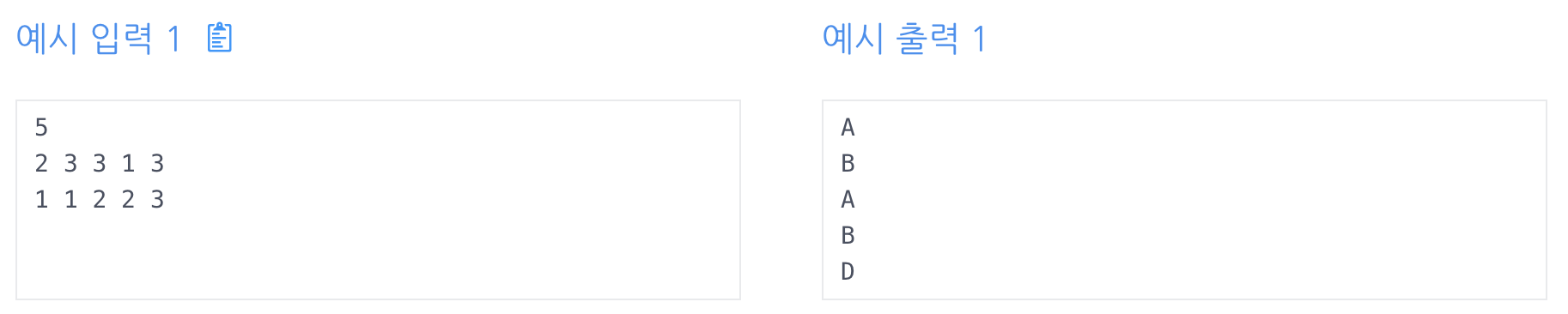 else if(a[i]==3&&b[i]==2) answer+="A";