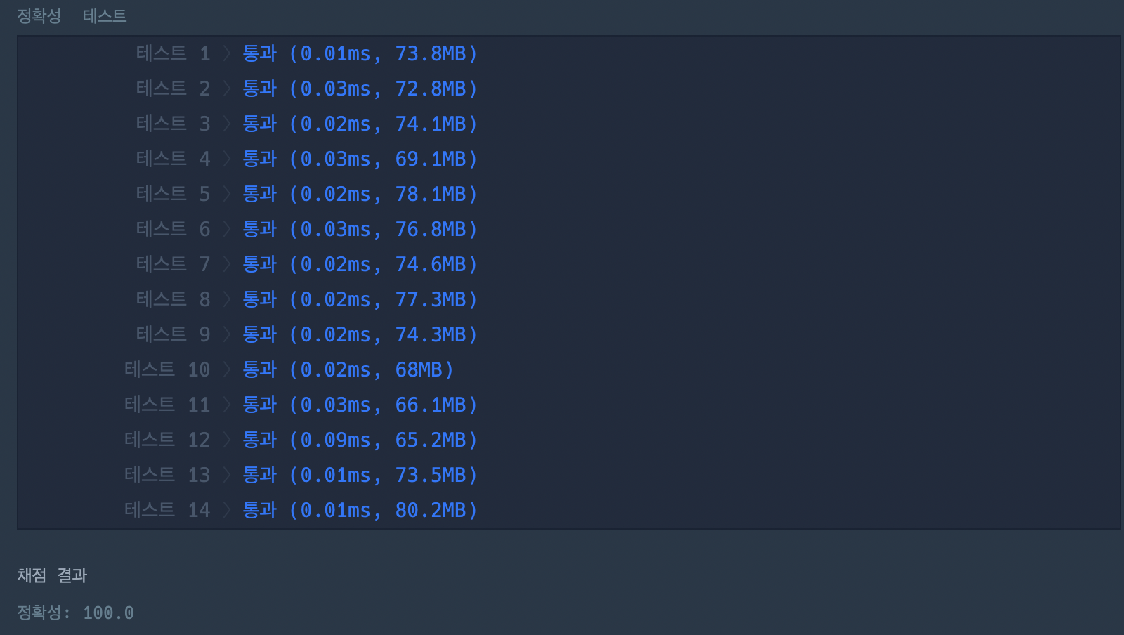 ์ฃผ์ด์ง ํ ์คํธ์ผ์ด์ค์์๋ b๊ฐ ๋ชจ๋ 1์ด์ด์, ํ ์คํธ์ผ์ด์ค์์๋ ๋ค ํต๊ณผํ๋๋ฐ ์์ธํ ์คํธ์ผ์ด์ค์์ ๋ค ํ๋ ธ์์.